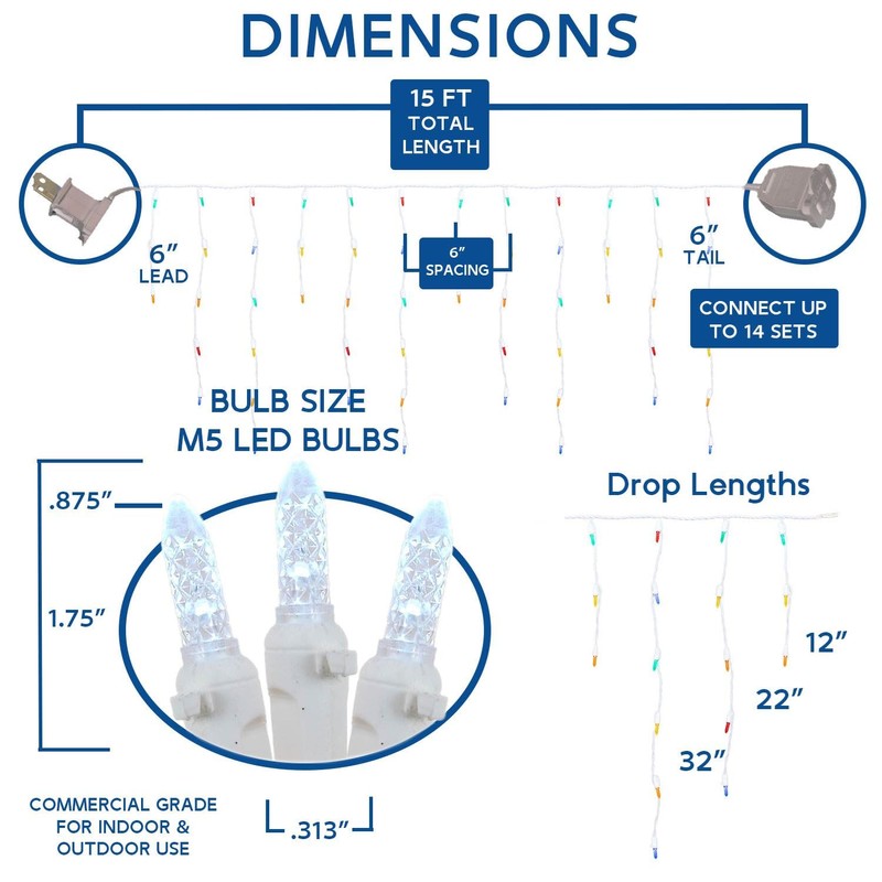 - 150 Light Multi White Wire M5 LED Christmas Icicle Light Set