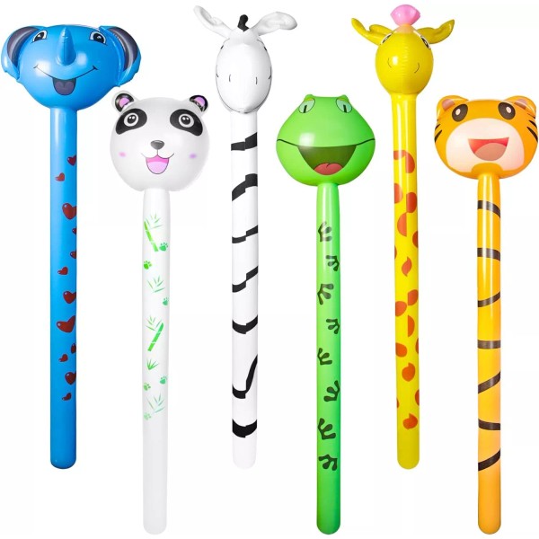 - Inflatable Stick Animal Set - Elevate your party with our 6-piece inflatable stick animal set. Featuring a tiger, zebra, giraffe, elephant, panda, and frog, these whimsical inflatables bring fun to any gathering.