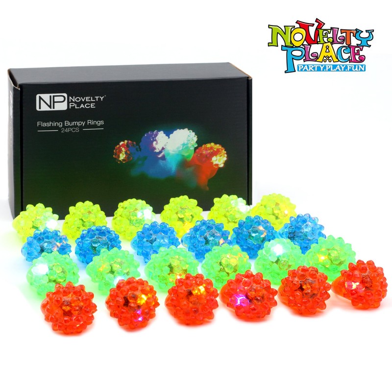 Novelty Place [Party Stars] Flashing LED Bumpy Jelly Ring Light-Up Toys (24 Pack)