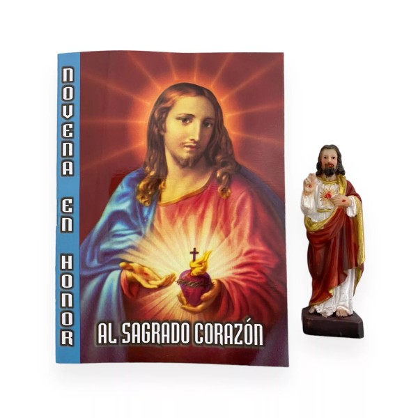 Novena al Sagrado Corazon Jesus con Mini Imagen Estatua Prayer Book Spanish Gift