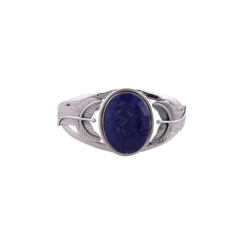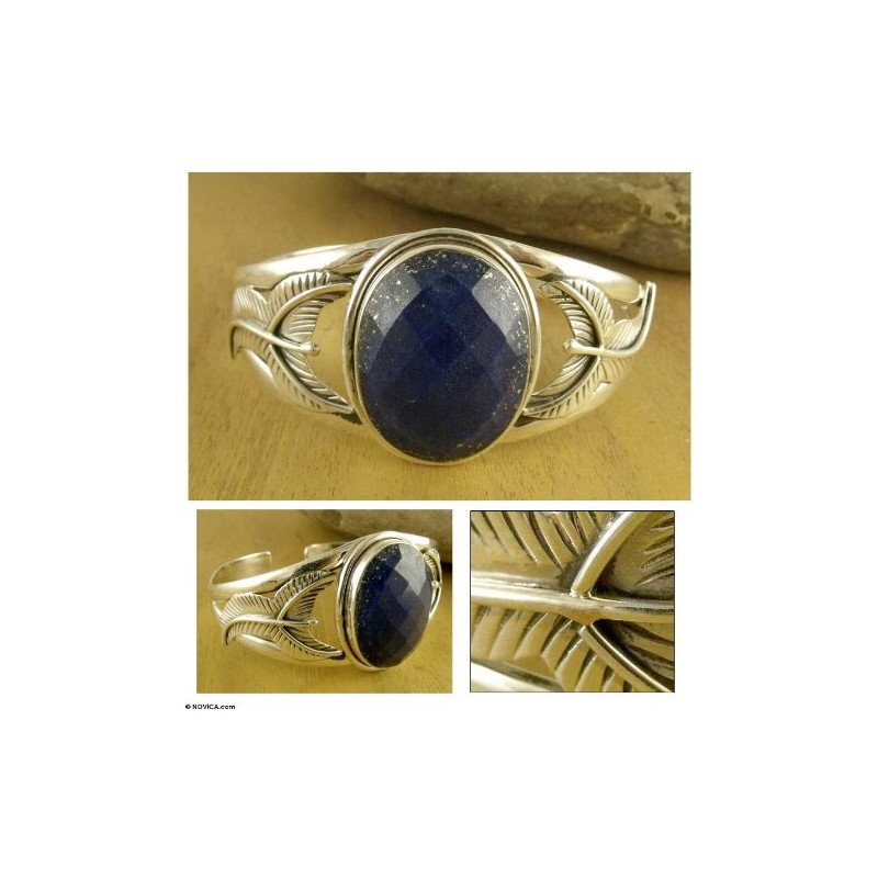 NOVICA Artisan Handcrafted Lapis Lazuli Floral Bracelet Sterling Silver Cuff with Blue India Royal Bright Cobalt Reflecting Pond Leaf Tree Birthstone [6.5 in L (end to End) x 1.3 in W] ' Sea