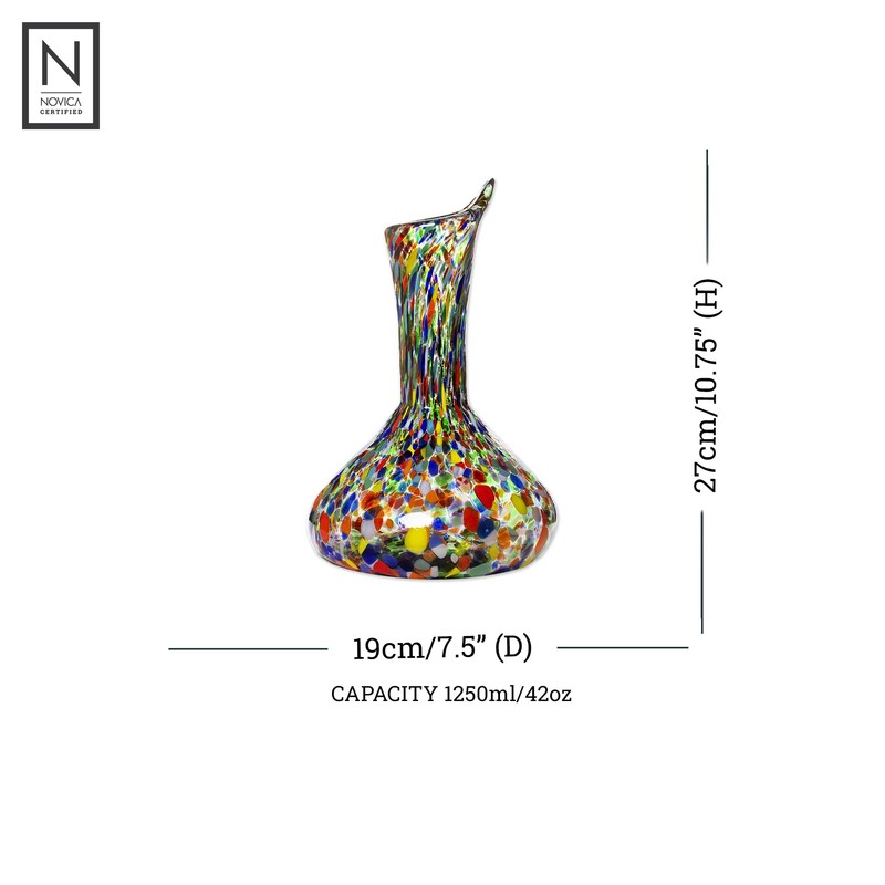 NOVICA Artisan Handmade Handblown Glass Decanter Artisan Recycled Multicolor Mexico Tableware Drinkware Pitchers [10.75in H x 7.5in Diam. 42 Oz.] 'Jubilant Color'