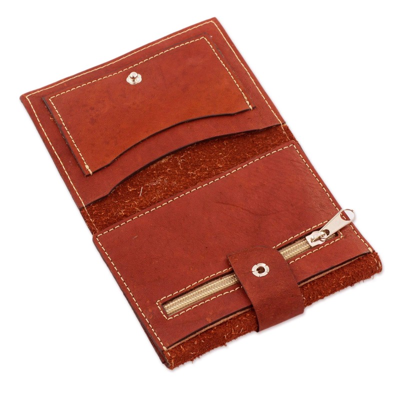 NOVICA Artisan Handmade Leather Wallet Geometric in Redwood from Nicaragua Handbags Wallets Patterned ' Lively Culture in Redwood'