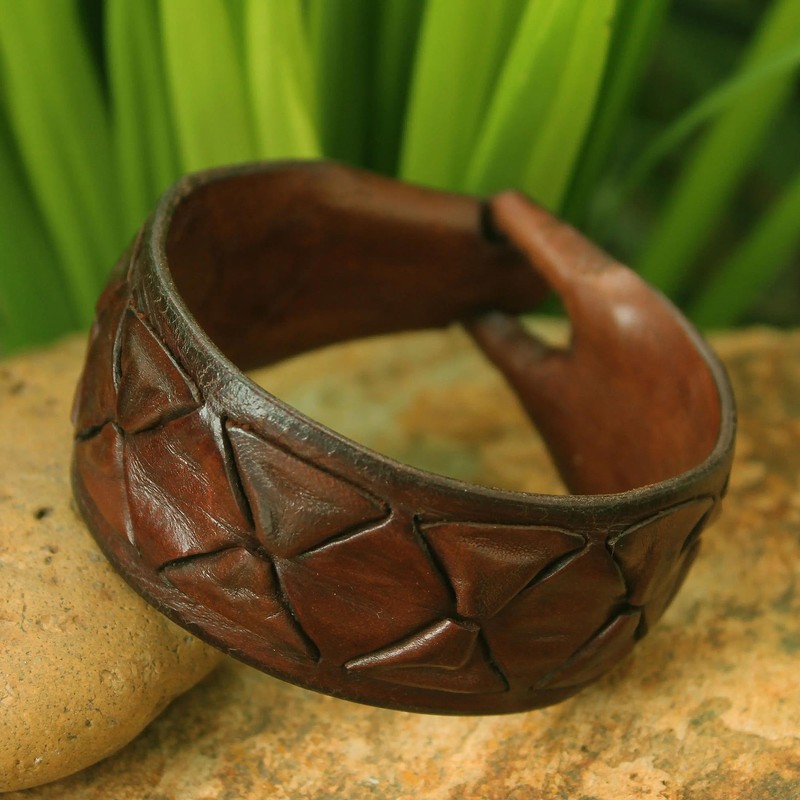 NOVICA Artisan Handmade Men's Leather Wristband Bracelet No Stone Thailand [8.5 in L x 1.5 in W] ' Sukhothai Brown'