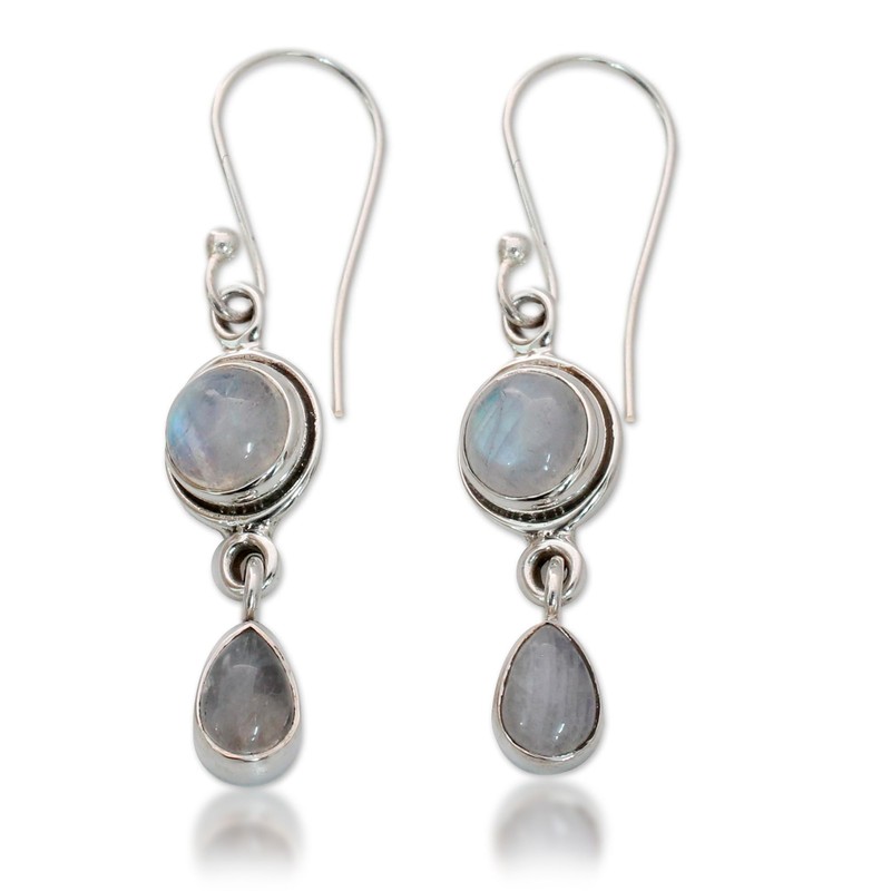 NOVICA Artisan Handmade Moonstone Dangle Earrings Sterling Silver India White...