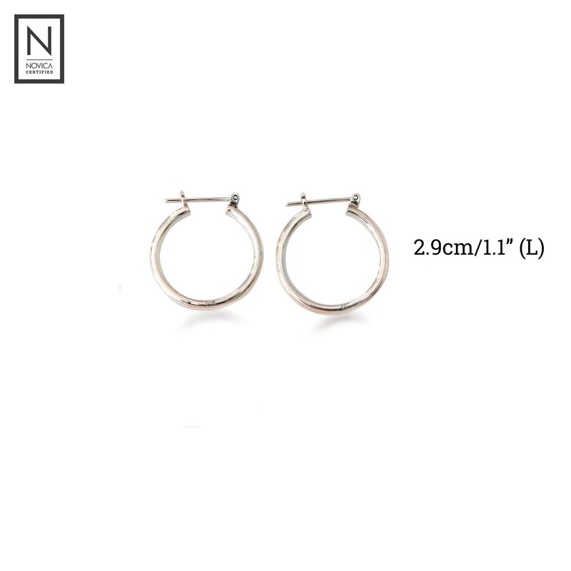 NOVICA Artisan Handmade Sterling Silver Hoop Earrings 1 Inch Indonesia [1.1 in L x 0.1 in W x 1 in D] ' Moonlit Goddess'