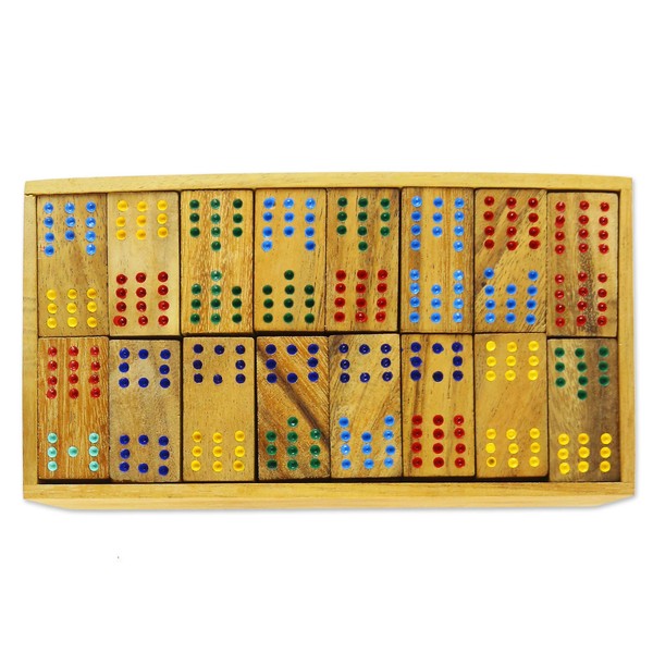 NOVICA Hand Made Rain Tree Wood Double Twelve Domino Set, 'Colorful Dominoes'