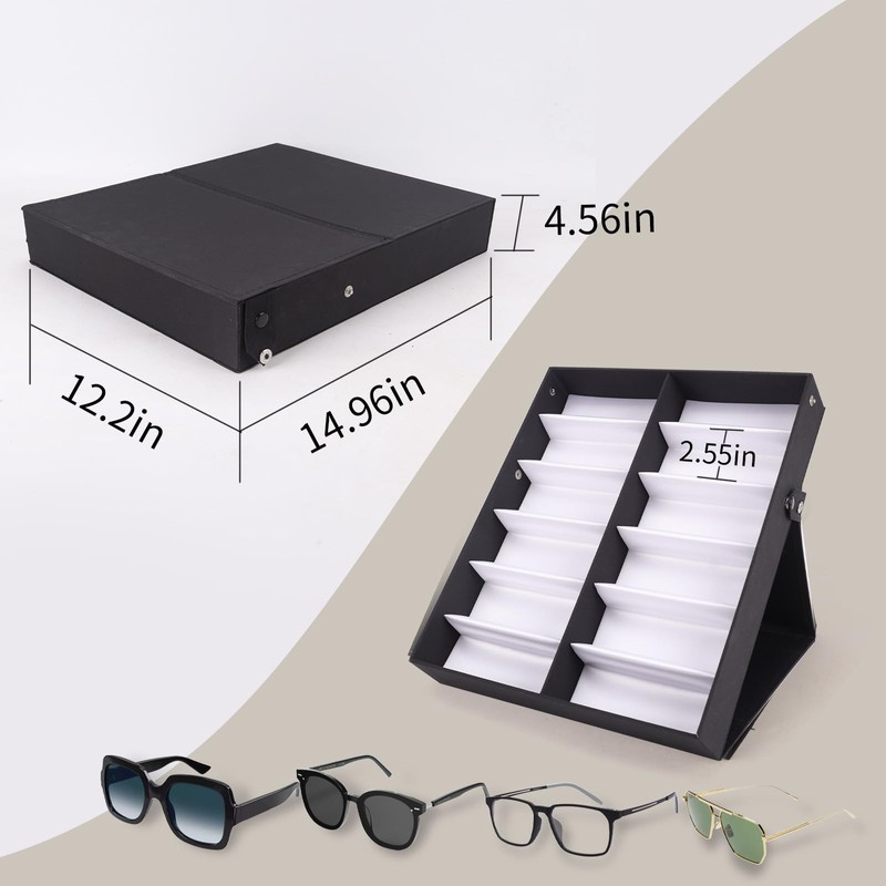- Multi Compartment Design: The 12 compartment glasses display box provides multiple independent storage compartments, suitable for storing and displaying multiple pairs of glasses, making it easy for users to quickly find the glasses they need.