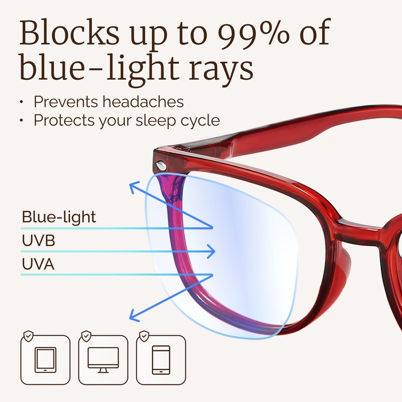 - ANTI BLUE LIGHT GLASSES: Upgrade your screen time with this stylish blue light reading glasses for women. With these eye glasses for every place you relax, you can protect your eyes and maintain a polished look wherever you go.