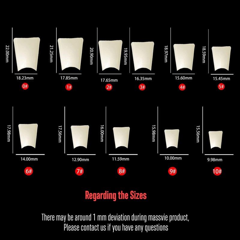 - 👍FRIENDLY TO SMALL HANDS: Our nail tips come in 12 different sizes to cater to a variety of finger sizes, especially friendly for those with petite and medium nail beds. The thumb cuticle size is 12.9mm / 0.51 inch, if you have bigger nails please choose our pre-etched duck nail tips, which has wider design. It is dedicated for both professional salons and DIY users to create stunning manicures or apply press-on nails.