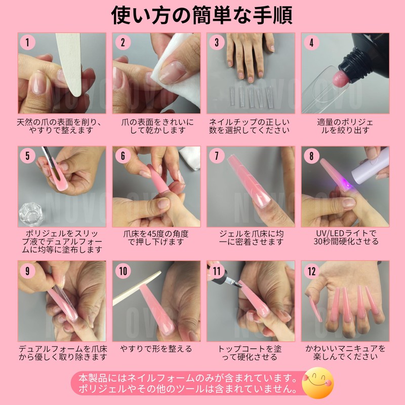 - Check out our creative nail products: NOVO OVO has developed the world's first dual foam foot nails, curved stiletto 3D foam and duck nail dual foam. If you are interested in duck nails, curve styles, extra long nails, and extra thick nail tips (almond, cofin, square, oval, toe), please choose NOVO OVO