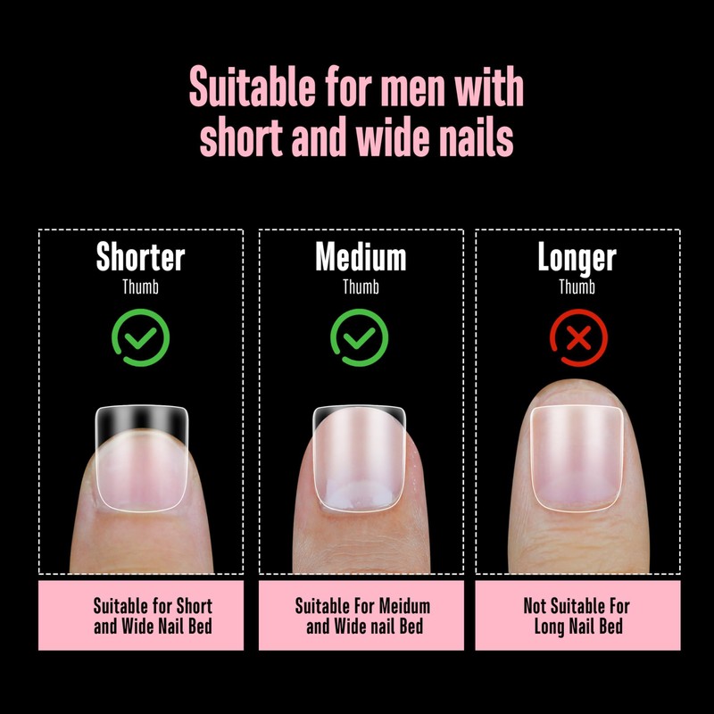- EXTRA SHORT LENGTH DESIGN: Crafted for unparalleled comfort, our nail tips feature an Extra Short length, ideal for everyday wear, whether for men or women with wide nail beds. The middle finger tip measures an ample 0.64 inch (16.5 mm), while the remaining tips are proportionally shorter. Should you desire even less length, simply file to your preferred size. Experience the blend of functionality and style that makes nail application effortless!