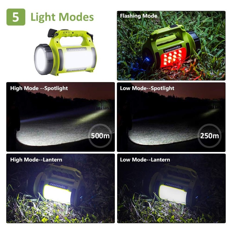 NOVOSTELLA Rechargeable LED Torch, Multi-Functional Camping Light, Waterproof Outdoor Spotlight Searchlight, High Power Beam Flashlight, 650lm Lightweight Lantern
