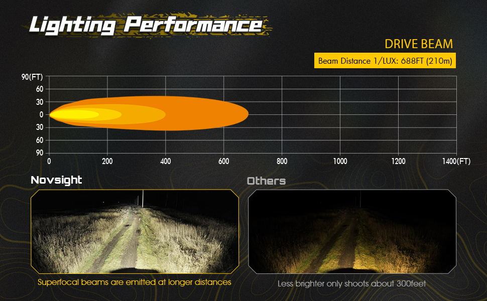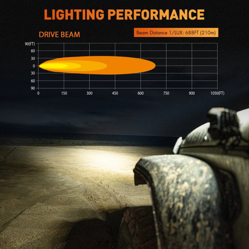 【Remarkable Illumination Performance】NOVSIGHT off road lights deliver powerful brightness that helps you navigate low-visibility situations like nighttime, rain, or fog. Illuminating even the darkest off-road trails for unparalleled driving safety at night