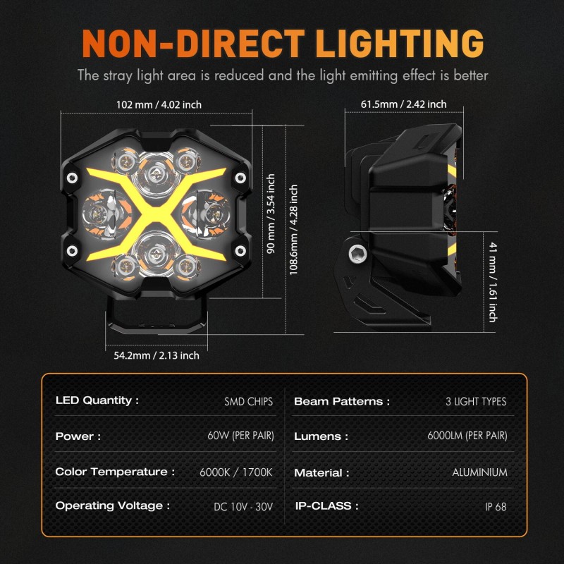 【Upgrade Your Vehicle’s Appearance】Make your off-road vehicle look cooler! NOVSIGHT LED pods feature a unique X-line design that not only enhances your vehicle’s appearance but also provides better road illumination when the lights are on.
