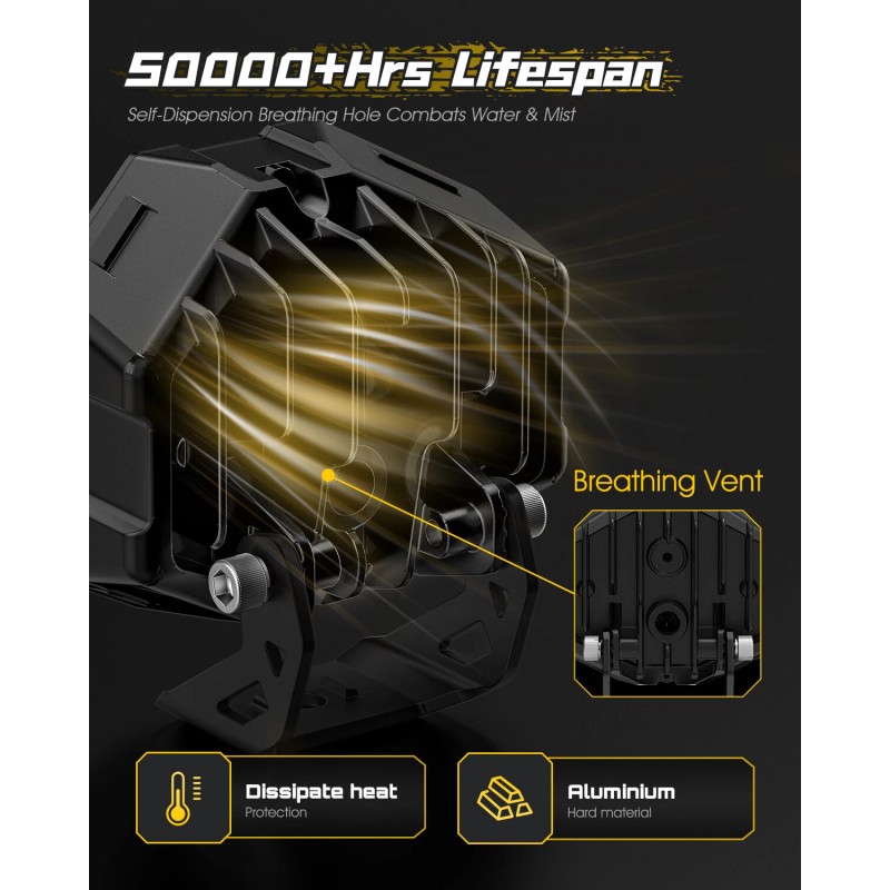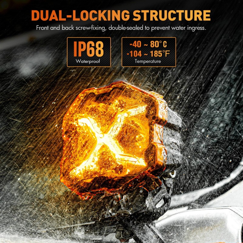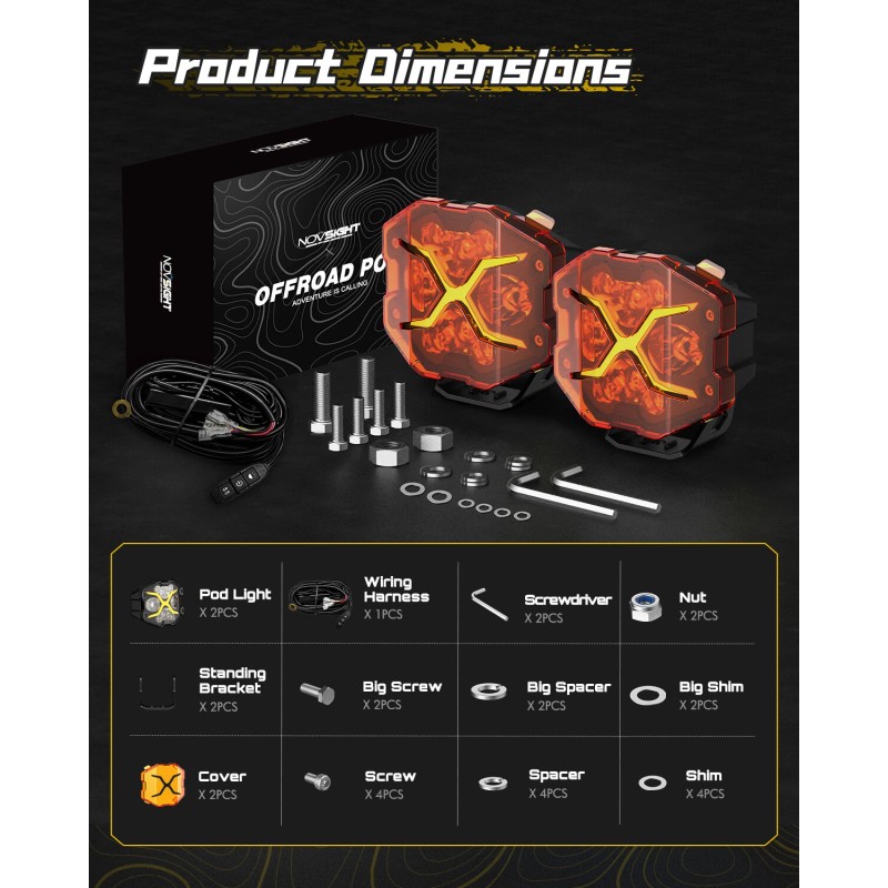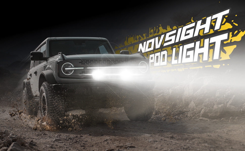 【Waterproof and Durable Construction】Designed with an IP68 waterproof rating, NOVSIGHT pod lights are built to withstand harsh conditions, ensuring reliability during all your off-road challenges