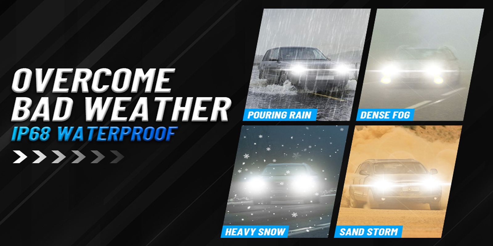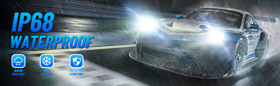 【Better in All Weather】---The N97 series LED bulbs boast an IP68 high-quality waterproof rating, providing effective waterproofing and freeze resistance. It ensures seamless operation even in adverse weather conditions like rain, snow, and fog. Paired with its high-quality copper baseplate, it forms a more comprehensive protective structure, boosting the headlight's durability thereby achieving sustained performance.