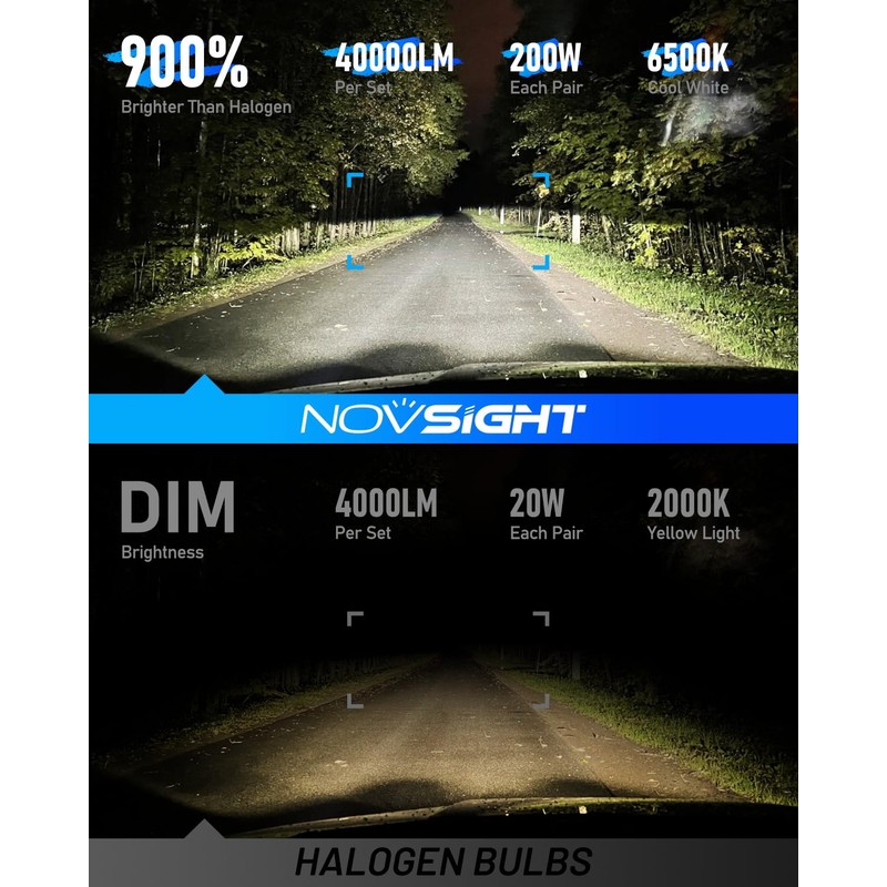 - 【900% Revolutionary Illumination】Have an exceptional lighting upgrade with our newest NOVSIGHT H13 fog bulbs. Equipped with state-of-the-art CSP chips and 6500K cool white, it offers an astonishing 200W output and 40,000LM per pair. This progress guarantees a remarkable 900% boost in brightness compared to your original bulbs. Relish enhanced visibility and extended range, enabling timely braking and improved road safety to reduce potential accidents