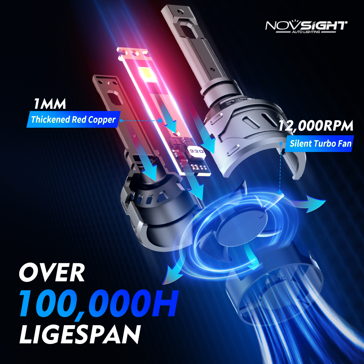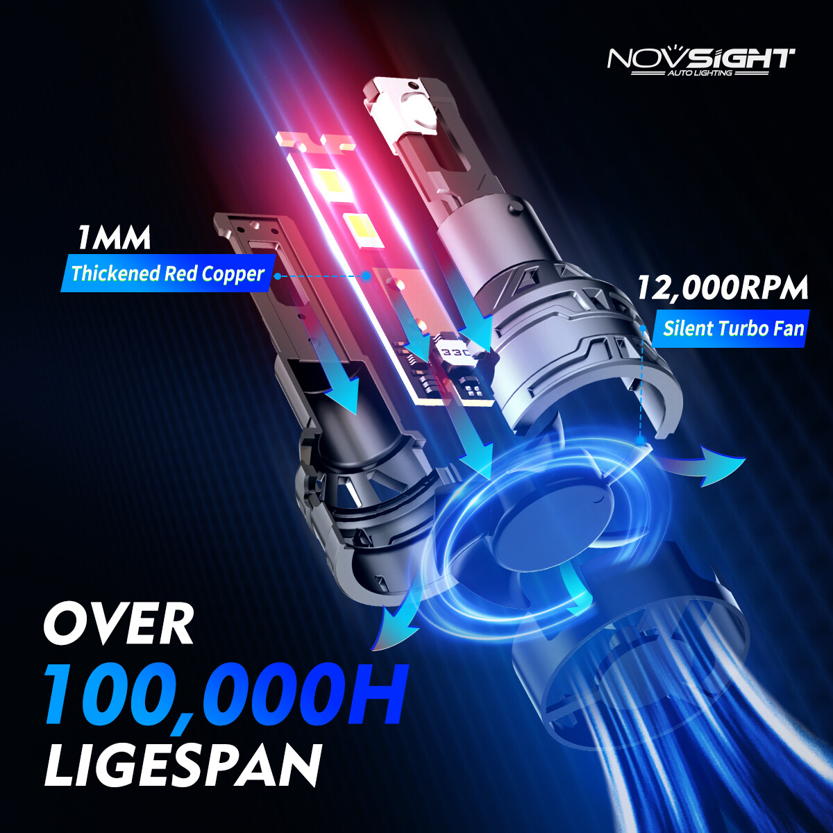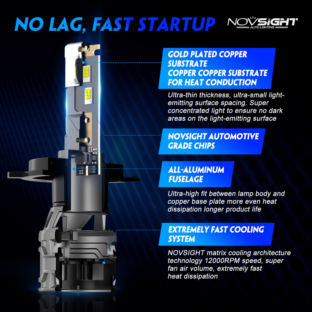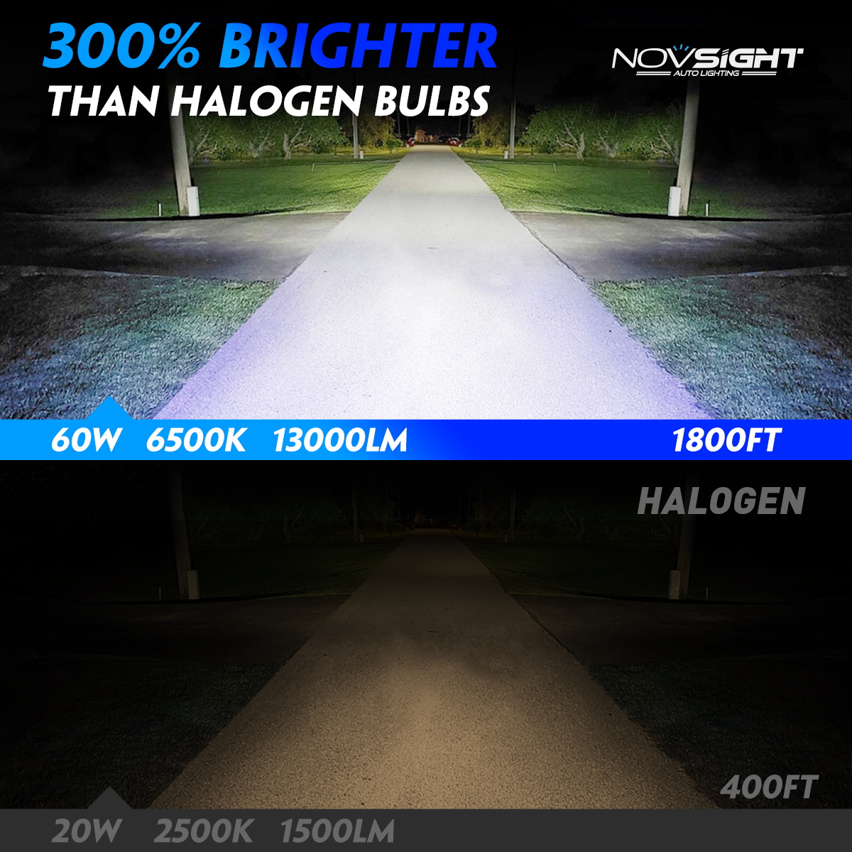 【Brighter, Improve Visibility When Driving】---The advanced LED chips of the NOVSIGHT N61 led headlight bulbs output enough light to give a 400% brightness over stock bulbs, enhance visibility for safer driving at night, decrease the risk of accidents.