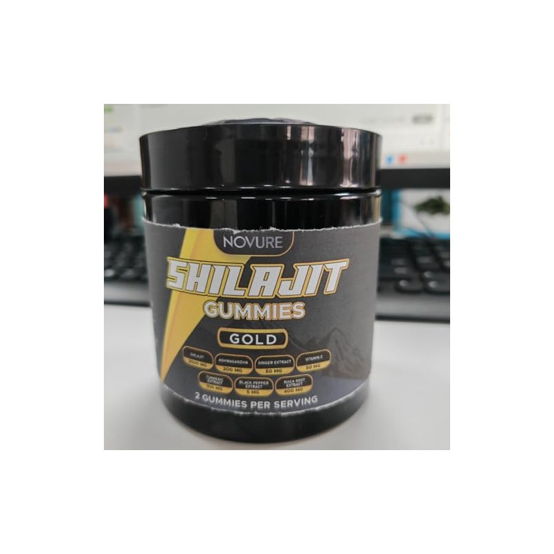 Novure Pure Himalayan Shilajit Gummies Gold No Added Sugar Ashwagandha, MACA Root, Turmeric Extract with Vitamin C for Energy, Non-GMO 100% Natural & Organic (60 Count, Gold)