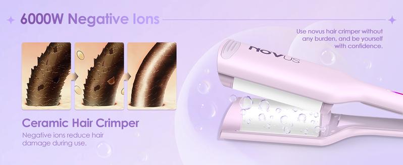 √【6000W Negative Ions Universal Hair Crimper】Novus professional curling iron is used PTC technology and 60000000+ negative ions to minimize your hair damage problems. The curling iron Smooths away frizz and adds smoothness and shine during use.