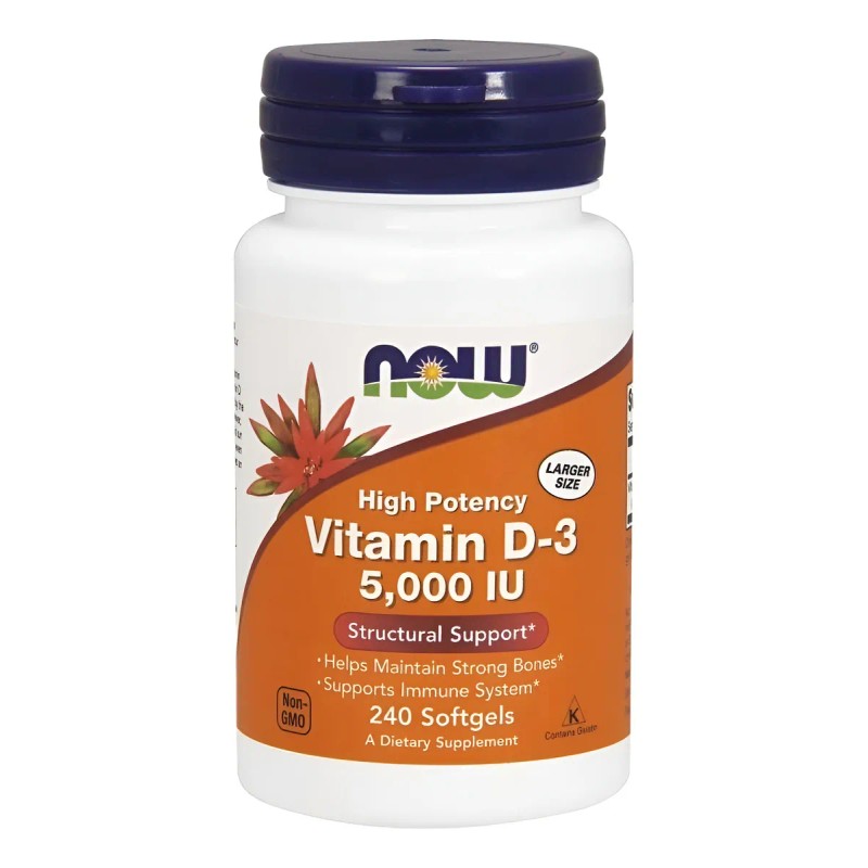 Now Bone Immune Health Foods Vitamina D3 5000 Alta Potencia 240 Caps Blandas Sin Sabor - Producto Original de Alta Calidad, Entrega Rápida y Segura,
