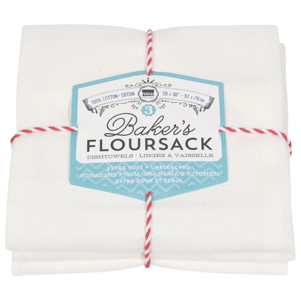 Now Designs Bakers Floursacks, Set of Three, Unbleached White, Set of Three