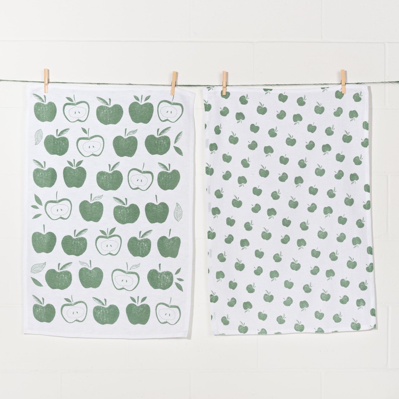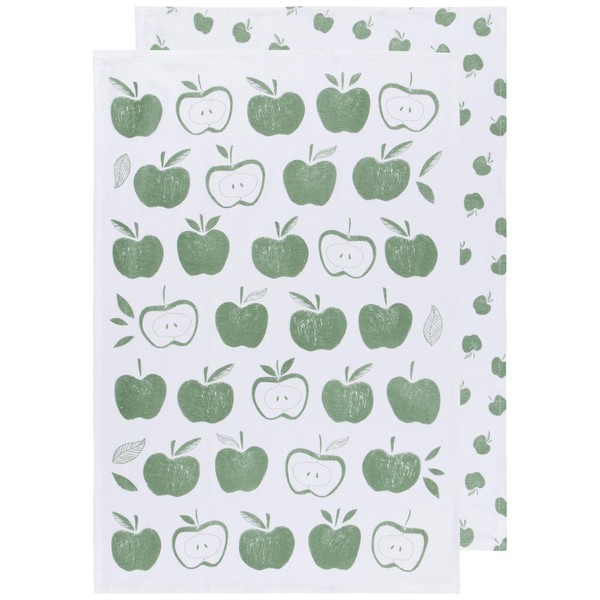 Now Designs Floursack Kitchen Towels Quick Dry Cotton Hand Towel Set of 2, Elm Green Apples Print, 20 x 30 in