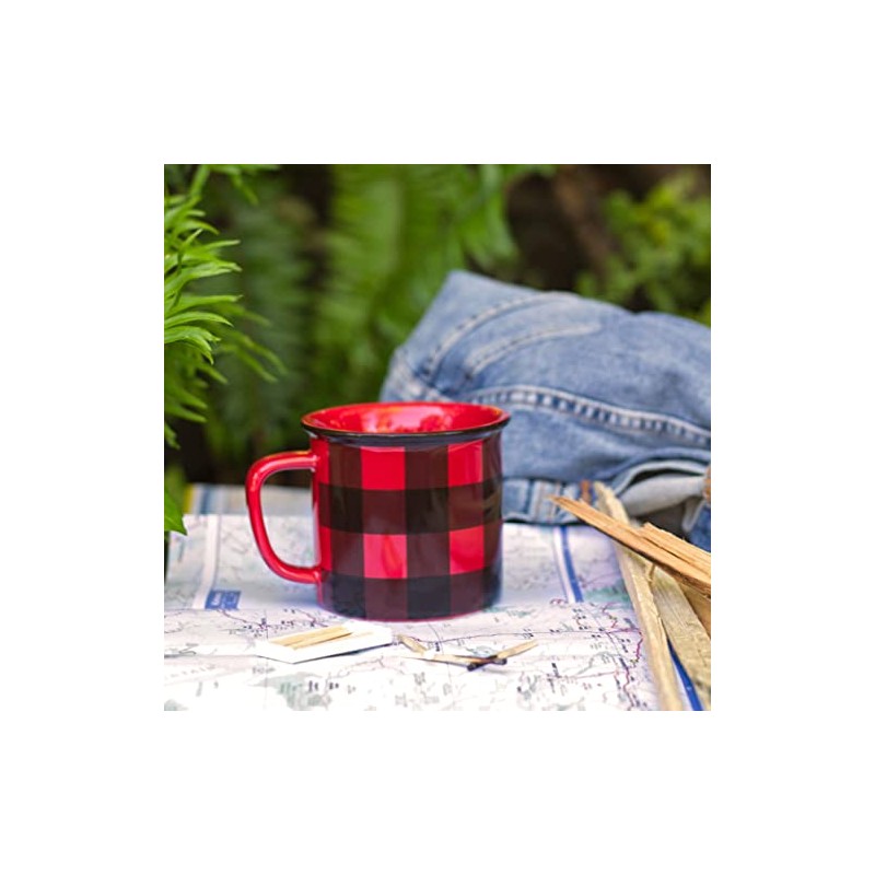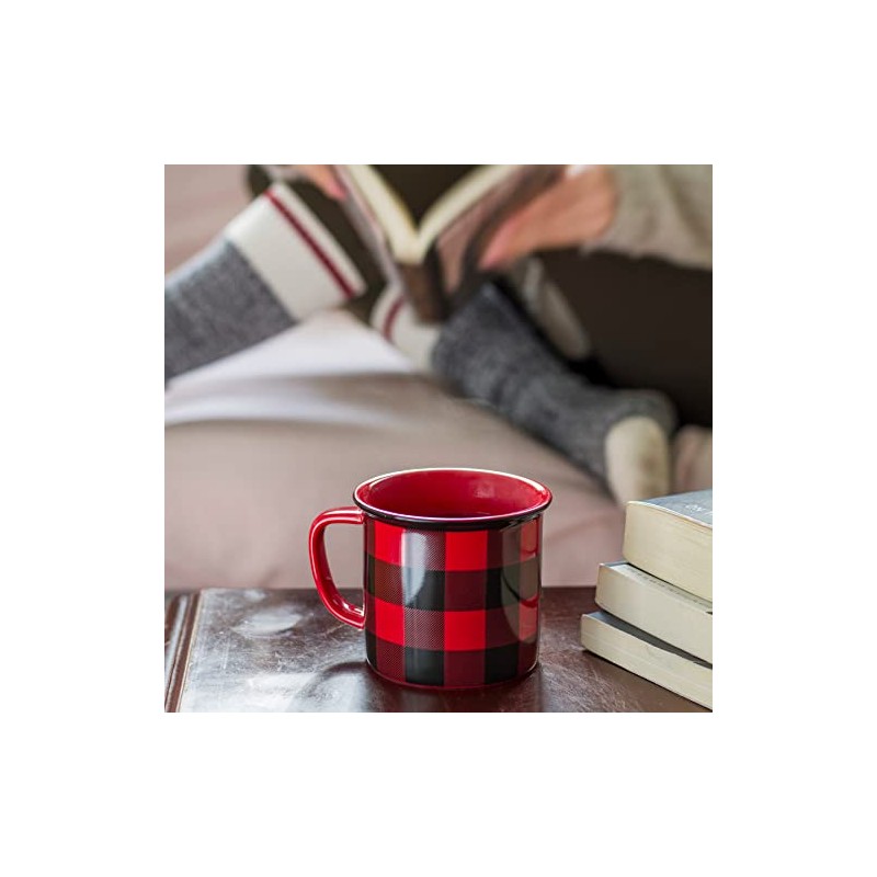 Now Designs Red Buffalo Check Heritage Stoneware Mug 12 oz, Set of 2