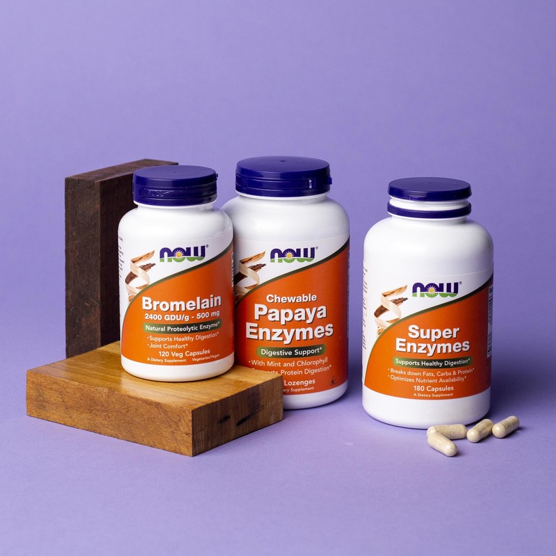Take capsule with a meal. Now Super Enzymes is a comprehensive blend of enzymes that supports healthy digestion. Formulated with bromelain, ox bile, pancreatin and papain, Super Enzymes helps to optimize the breakdown of fats, carbohydrates and protein.