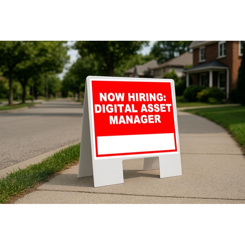 Now Hiring Digital Asset Manager Write On Me Red Folding Coroplast A-Frame with Double-Sided 23in x23in