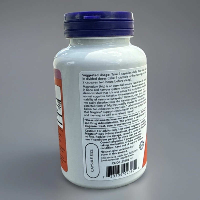 NOW Magtein 90 Veg Capsules Magnesium L-Threonate Promotes Brain Health. 7/27