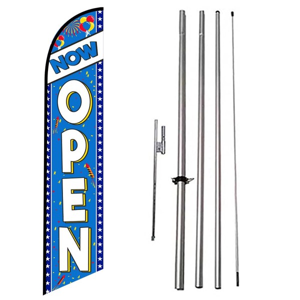 NOW OPEN Advertising Swooper Feather Flag Banner with Pole Kit and Ground Stake (Stars & Stripes) - Perfect for Outdoor Banner Signs
