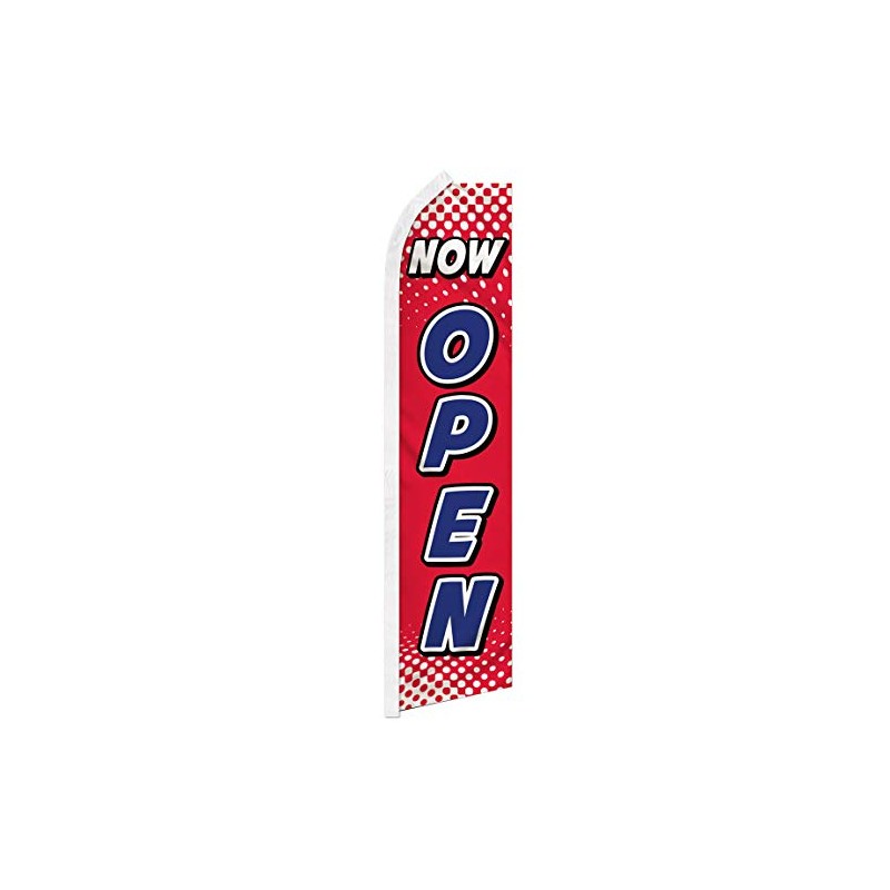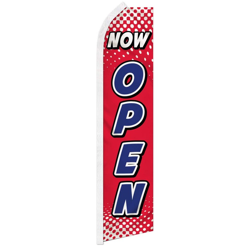 Now Open Red & White Swooper Advertising Flag - Perfect for Store Fronts, Businesses, Retailers, Shops, Events, Restaurants