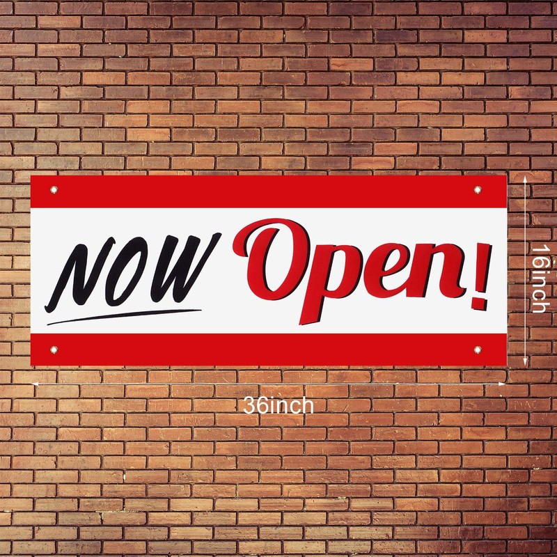 Now Open Sign Banner, Business Open Flag Now Open Vinyl Sign Banner with Rope for Business Advertisement Store Sign, 16 x 39 Inch