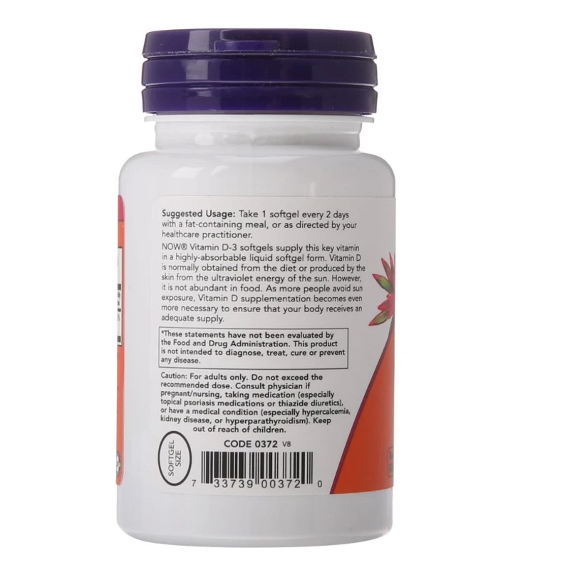 NOW Foods Vitamin D-3 5,000 IU delivers a highly absorbable form of the "sunshine vitamin" in a convenient softgel. This high-potency supplement is designed to support healthy immune system function and help maintain optimal bone mineral density. Each bottle contains 120 softgels for long-lasting support.