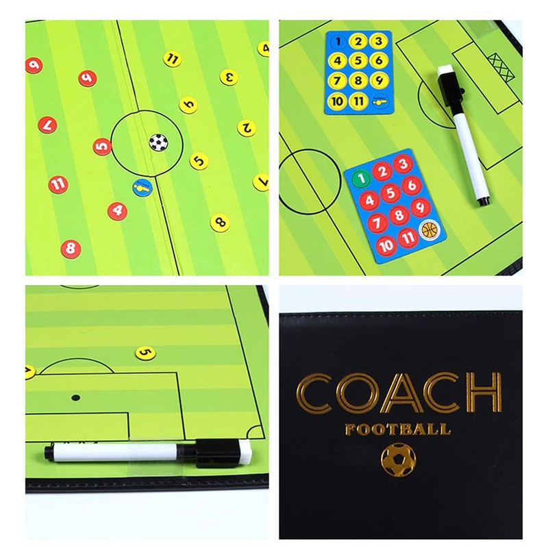 • ♥【WITH MAGNETS】The football coaching marker board is designed with strong magnets. The chess pieces are also made of strong magnets and will not fall down vertically. The chess pieces are brightly colored and durable.PU leather cover, w-aterproof and durable to use.