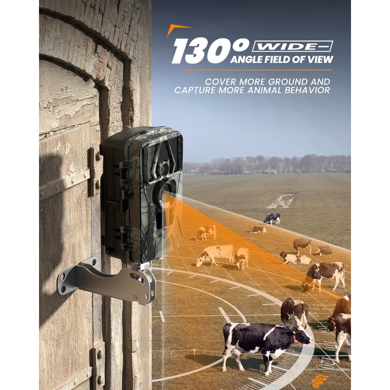 - 【0.05s Fast Trigger】Equipped with a PIR (Passive Infrared Sensor), our motion activated camera detects wildlife movement in 0.05s and instantly activates. The 130° wide-angle lens captures a broader view, ensuring every moment is recorded. Ideal for wildlife observation, security surveillance