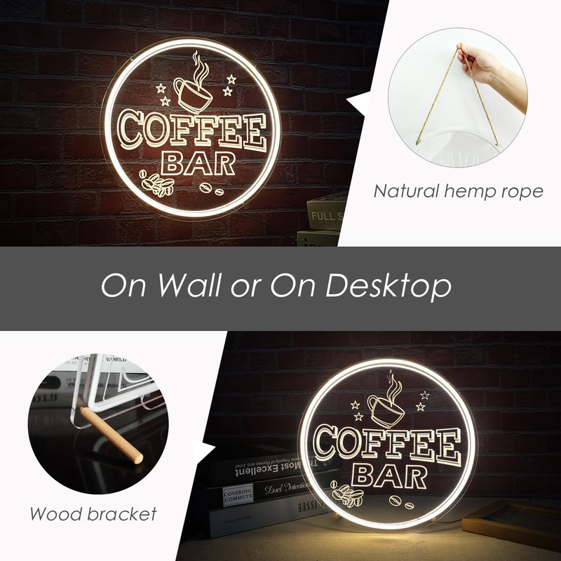 - ★【Extremely Safe 5V Low Voltage USB Powered】The neon coffee bar signs is powered by 5V input USB cable, you can connect it with 5V power adapter or any USB port. (NOTE: power adapter not included).