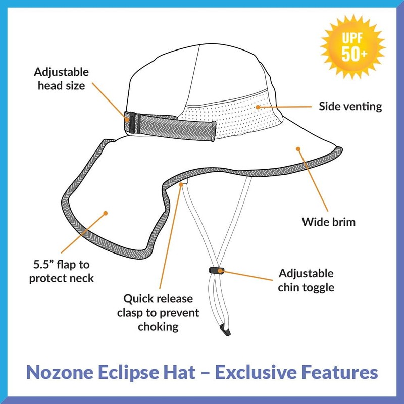Nozone Eclipse Kid's Sun Hat, Wide Brim Breathable Beach Hat with Adjustable Strap, UPF 50+ Protection - White, Large