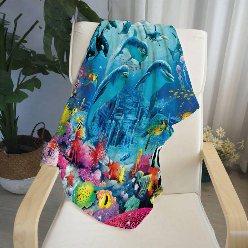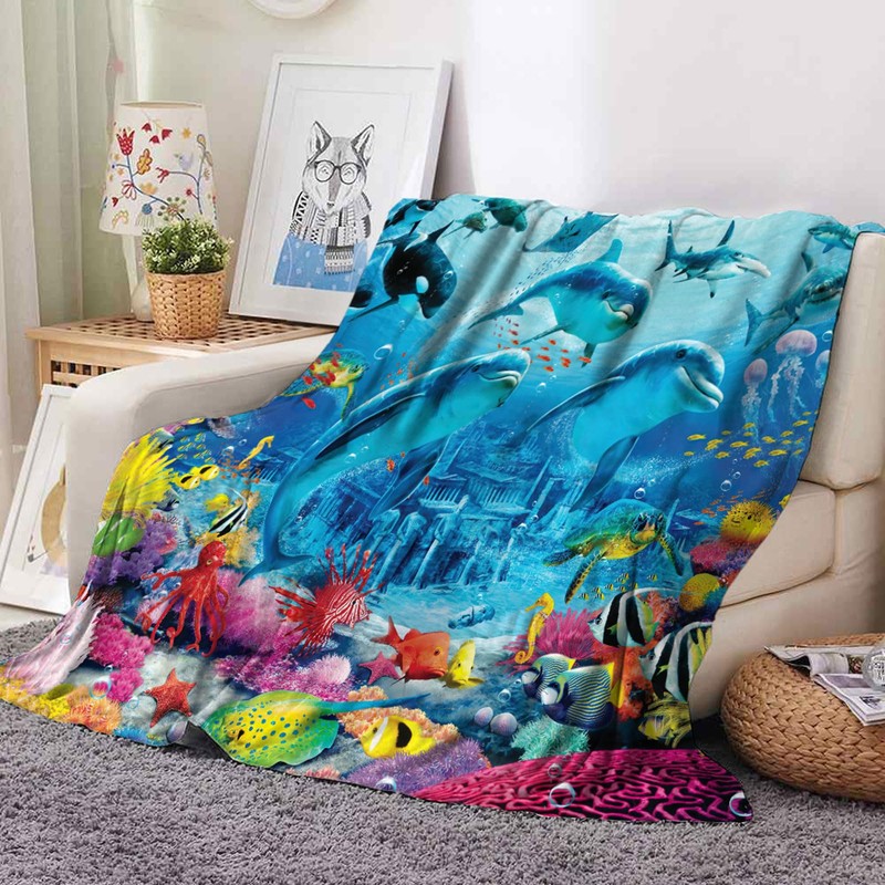 NPCEED Dolphin Blanket 150 x 200 cm, Flannel Blanket with Sea Creatures for Children, Boys, Girls, Ocean Marine Life Fleece Blanket, Cuddly Blanket, Sofa, Throw Blanket (130 x 150 cm, A)