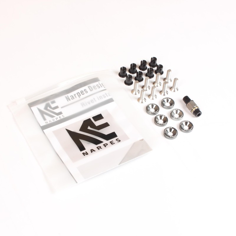 - Installation: installing the wickerbill with rivnut, rivnut tool provided, manual provided showing the detailed method of installation