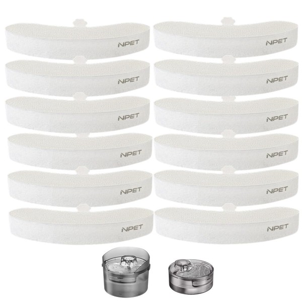 NPET 12 Pack Dog Fountain Replacement Filters with Pump Sponge, DF10/DF30 Pet Water Fountain