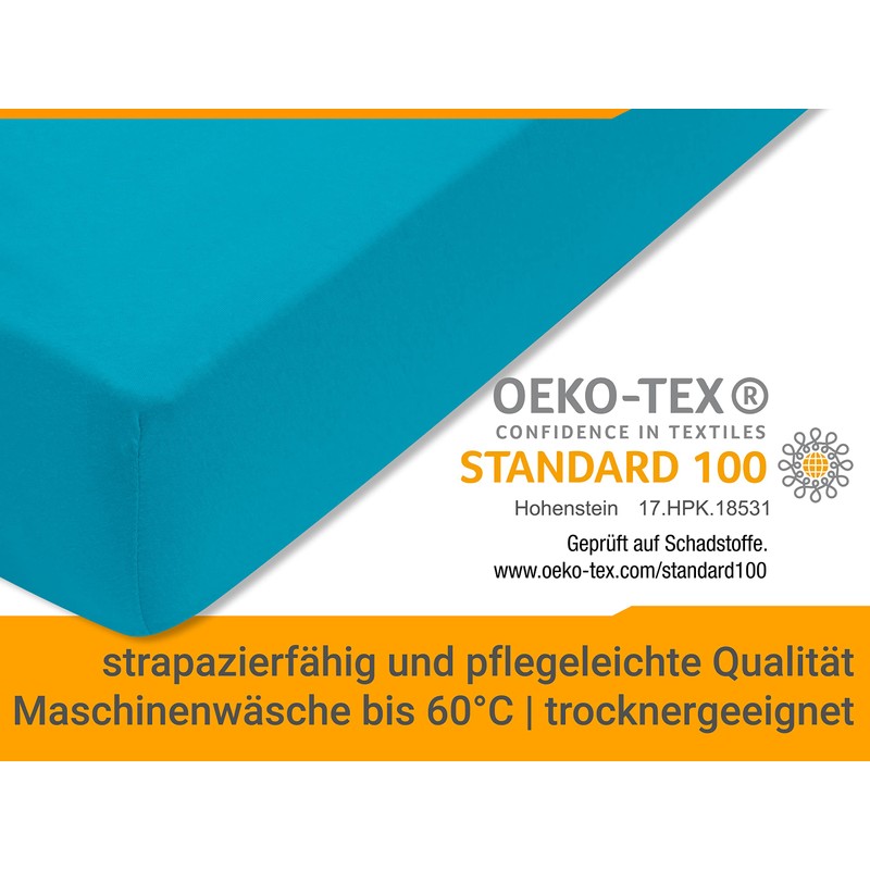 npluseins Classic Jersey Fitted Sheet – Many Colours and Sizes – 100% Cotton 159.192, 180–200 x 200 cm, Turquoise