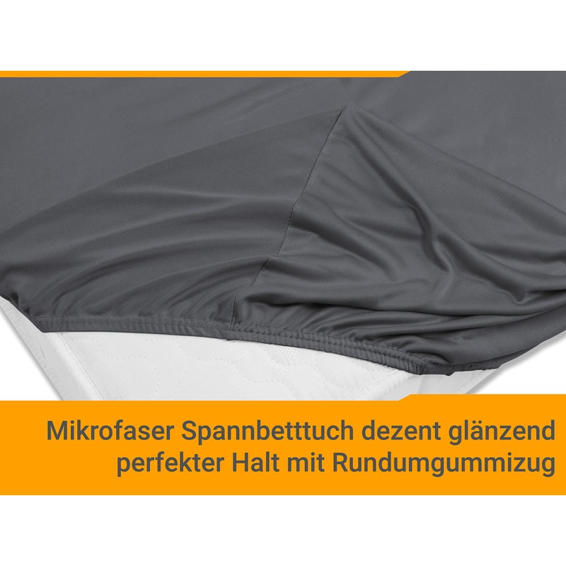 - Micro-fibre fitted sheet – silky, shiny fitted sheet with finely woven surface – available in 17 colours and 5 different sizes – for standard mattresses.