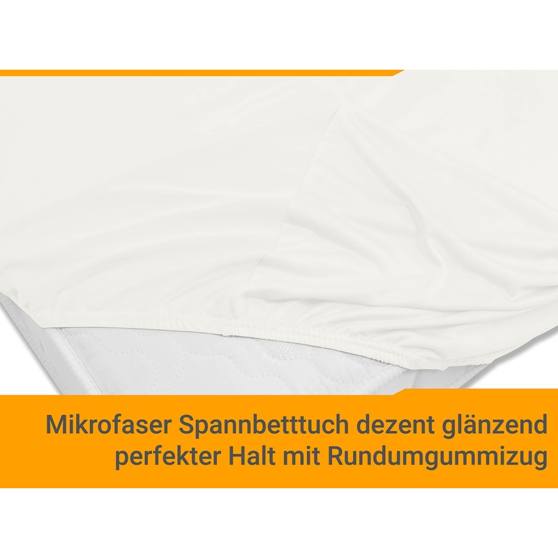 - Micro-fibre fitted sheet – silky, shiny fitted sheet with finely woven surface – available in 17 colours and 5 different sizes – for standard mattresses.