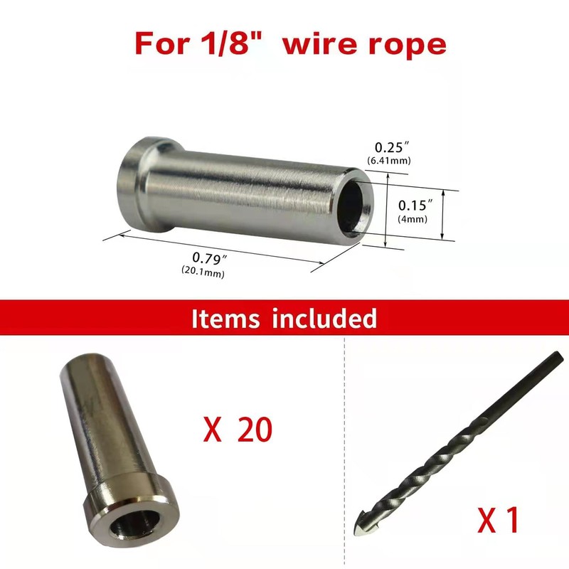 NPTKS 20 pcs of Stainless Steel Protector Sleeves Protective Cable Railing Kit Hardware Grommet for 1/8" Wire Rope Wood Posts T316 Marine Grade Deck Stair Railing