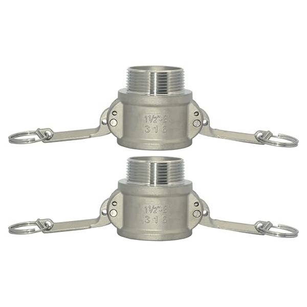 NPTSSFe 2PCS Male Pipe Threads Type B Trash Pump Adapter Female Camlock,Stainless Steel 316 Camlock Coupling (1-1/2 inch)