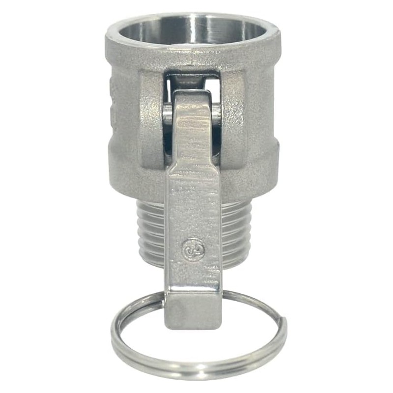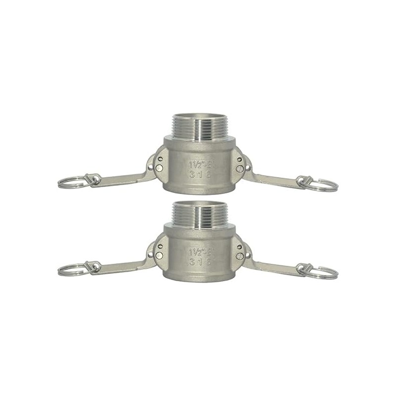 This premium 2-piece set of camlock couplings is crafted from high-grade 316 stainless steel, offering exceptional durability and corrosion resistance. Each adapter features a male NPT pipe thread connection on one end and a female camlock (Type B) fitting on the other, specifically designed for 1-inch trash pump applications. The quick-connect camlock mechanism includes sturdy locking arms with rings for secure engagement, allowing for rapid coupling and uncoupling of hoses and fittings. These industrial-grade adapters are precision-machined to ensure reliable sealing and optimal flow characteristics. The robust construction makes these fittings ideal for demanding applications in various industrial, agricultural, and construction settings where efficient fluid transfer is essential. The clear size markings (3/4"-B 316) are permanently cast into each coupling for easy identification.