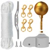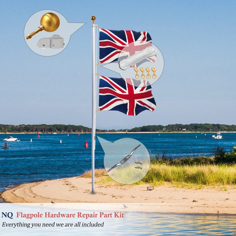 NQ Flag Pole Repair Parts Kit with 50 Feet Nylon Flag Pole Rope, 4 Pcs Flag Pole Swivel Snap Clips, Flag Pole Truck with Pulley, Flag Pole Top Ball, Zinc Alloy Cleat, Flagpole Accessories Tool Kits